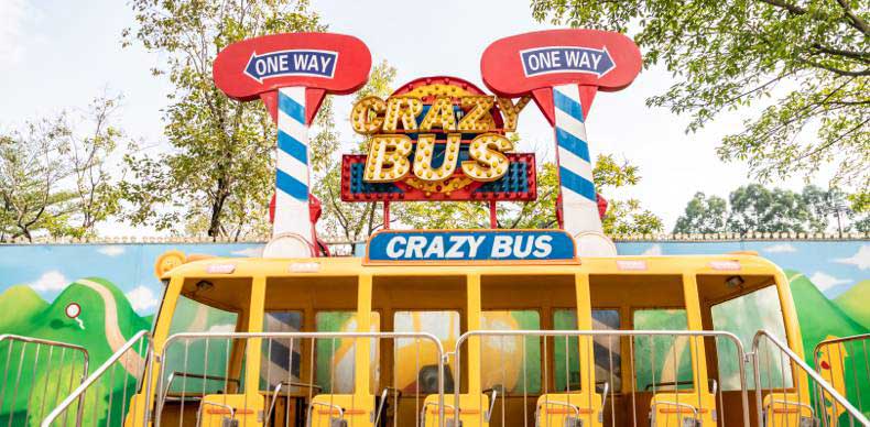 乘坐失控的巴士在空中疯狂摇摆,奇趣刺激。