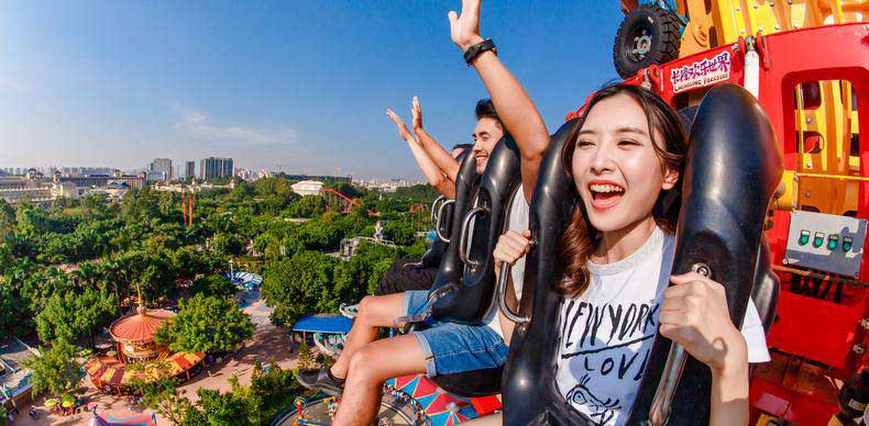 长隆欢乐世界中心的“金箍棒”上天入地!于65米高空全方位欣赏美景时,它将随时极速下坠。