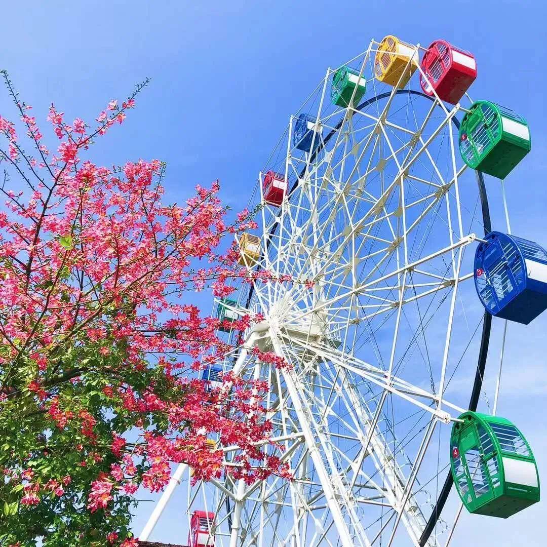 在这里游园还有多种方式选择,既可坐小火车或骑行徒步,亦可在天鹅湖上泛舟划竹筏体验小黄鸭等娱乐项目,还可以在摩天轮上俯瞰整个园区,美丽景色尽收眼底……