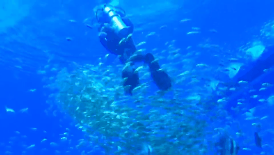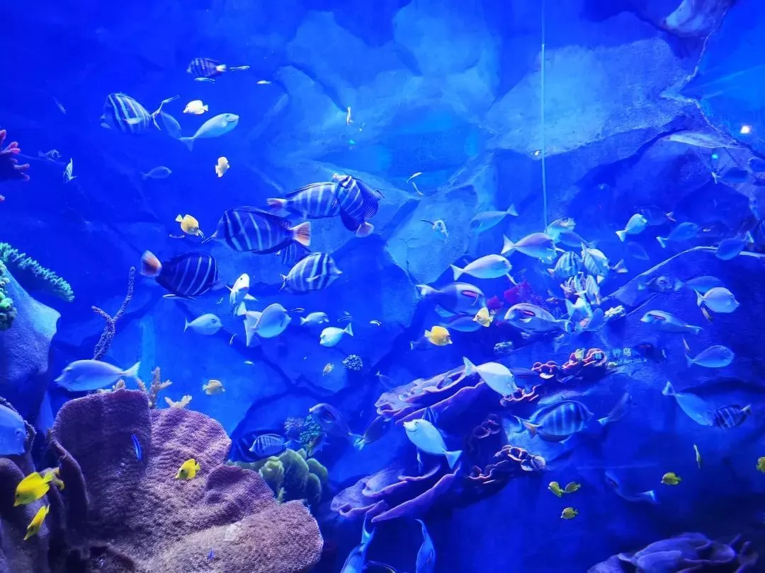 鲨鱼在头顶悠游,斑斓鱼群穿梭眼前